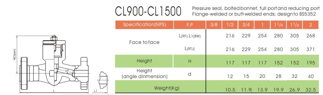 | Pressure Class | 1500lb (PN250) |