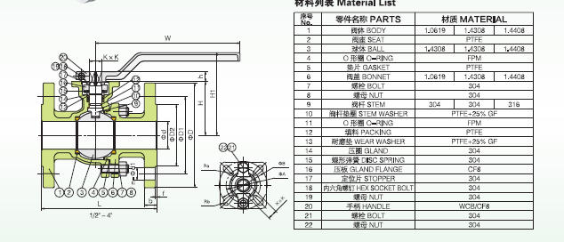 | Seat Material | PTFE (Standard), RPTFE, TFM1600 (Optional) |